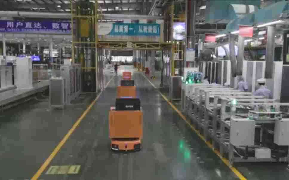 为车载冰箱物流配送打造的智能解决方案,,包含产中物流通过潜伏举升AMR搬运至线边,,,产后成品物流智能仓储,,流程包含产中物流智能齐套入库,,,线边安灯叫料AMR智能配送至线边,,,成品入库、、、、出库,,,通过无人堆高车机器人,,智能仓储管理替代人工作业管理,,,,实现更高存储、、、、更高效率、、、、更具柔性化的解决方案。。。